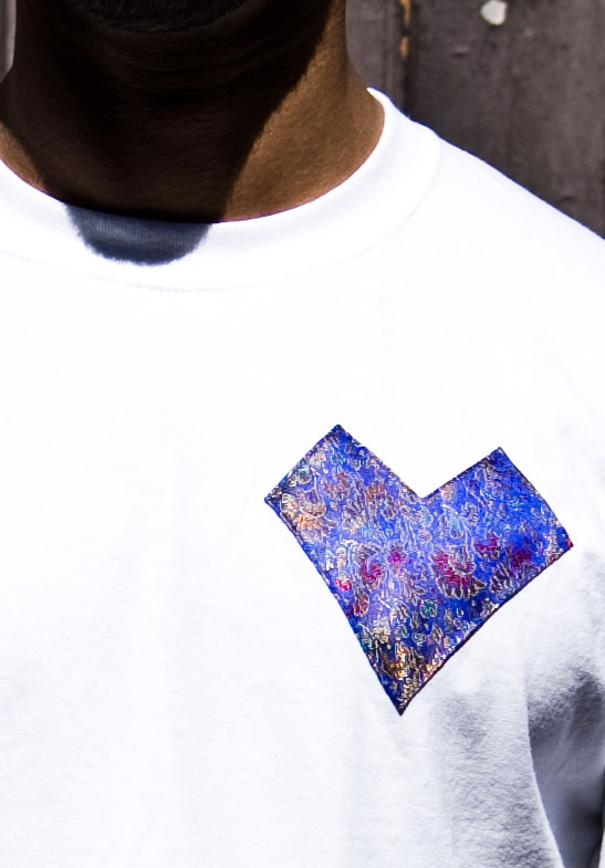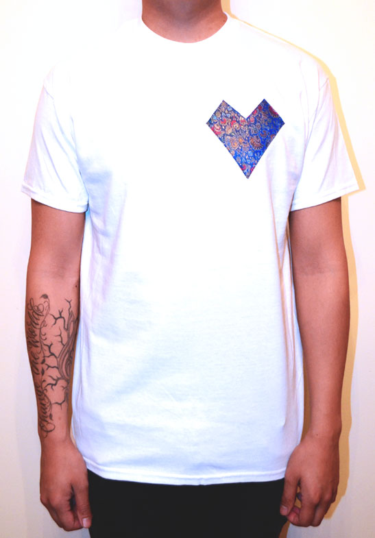 Mens high quality 100% cotton round neck t-shirt, constructed with a shiny vintage paisley pattern material sourced from the eastern continents, hand sewn on as a unique Pyramid design on both sleeves. This Classic t-shirt is a fully finished piece with unique inside and outside High quality Goldsauce woven labels and stitched logo. Hand made in the UK. Part of our exclusive and limited collection.
